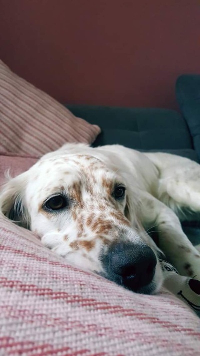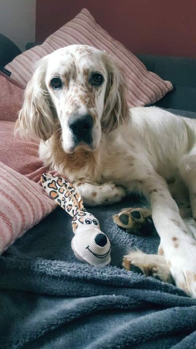 IBIL kam gesund und munter am 26. Mai 2018 im Setterland an. Sie ist eine zunächst vorsichtige, liebevolle und verspielte junge Setterine. Anfänglich eher zurückhaltend, dann taut sie aber allmählich auf! IBIL ist clever und aufgeweckt.