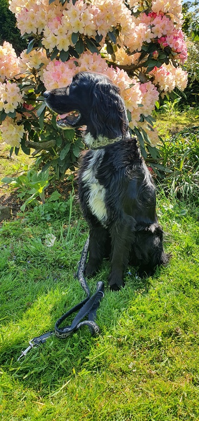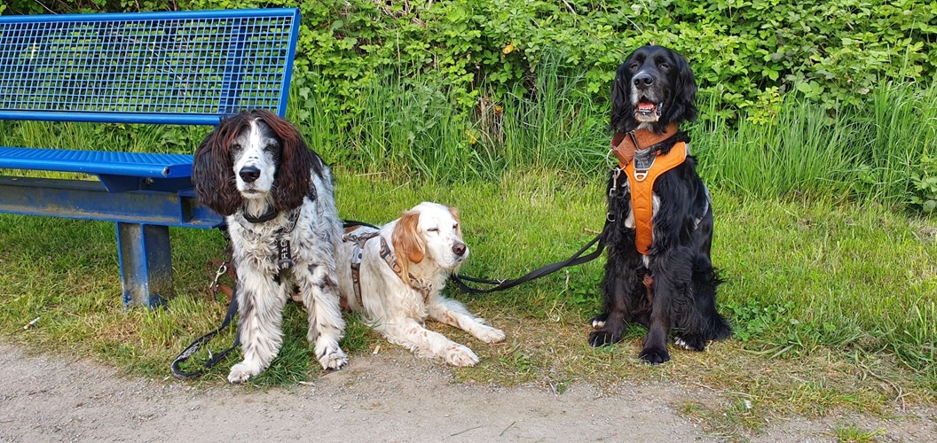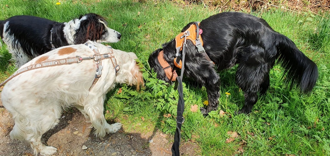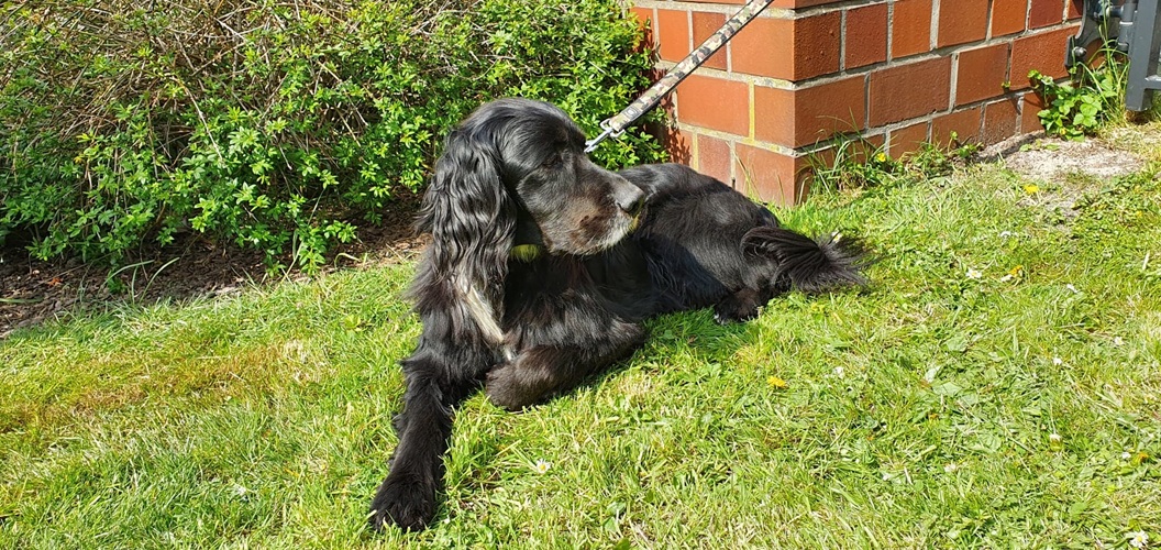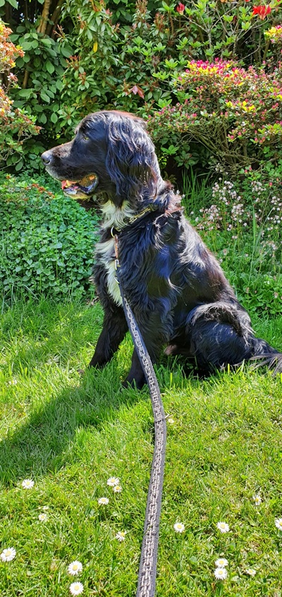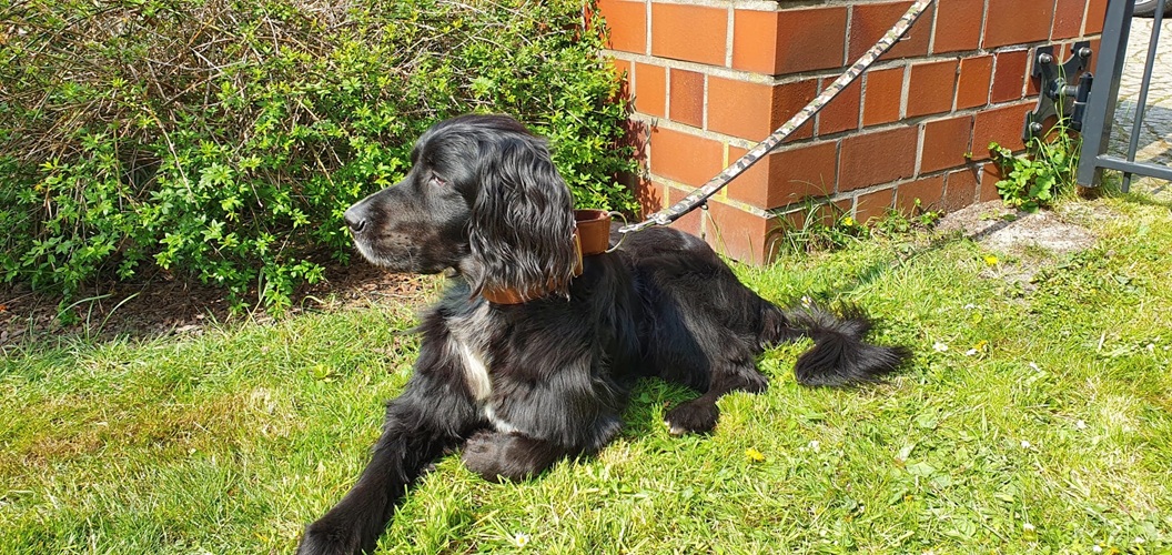 Bei den tollen Spaziergängen wünscht er sich mehr Zusammenarbeit mit seinen Menschen. Hundebegegnungen findet er super und er spielt auch gerne mit anderen Hunden. Aber mehr Regeln bei Spaziergängen, mehr Beschäftigung, mal einen Futterbeutel suchen, das fände er super und hat versprochen, dann auch ganz sicher besser mitzuarbeiten. Er kannte ja nur den Balkon bei seinen ersten Besitzern, ist ja klar, dass, wenn man im Setterland ankommt, erst einmal geflasht ist von den ganzen Eindrücken.