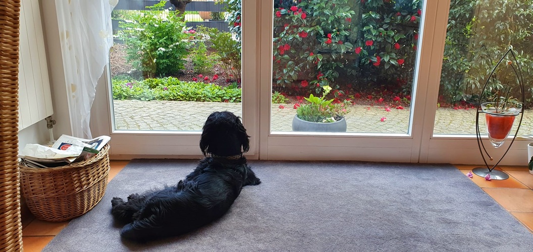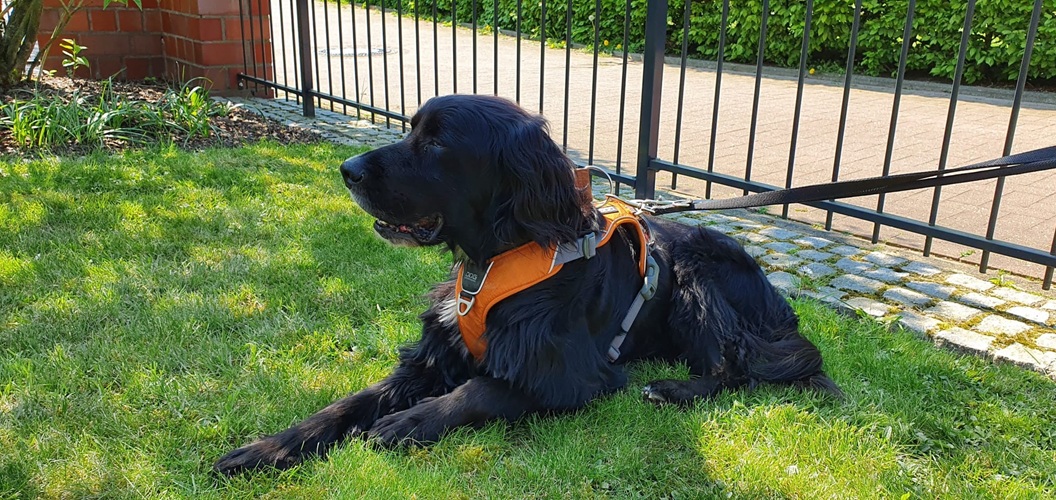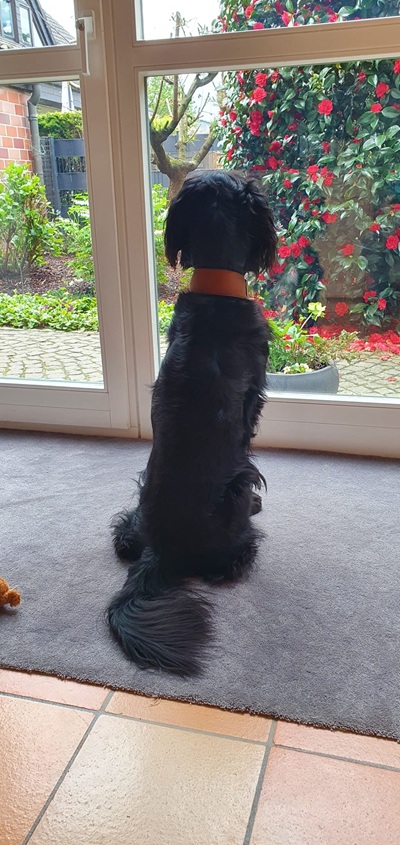 Die Welt außerhalb des Hauses mit ihren vielen Reizen findet er sehr aufregend. In den ersten Tagen hier bei uns waren die Spaziergänge sehr anstrengend, besonders für ihn. Um die Leinenführigkeit zu verbessern, gehen wir nun täglich in unterschiedlichen Gebieten spazieren und trainieren fleißig. Besonders das Stehenbleiben und Warten üben wir immer wieder und es klappt nach der kurzen Zeit schon sehr gut.