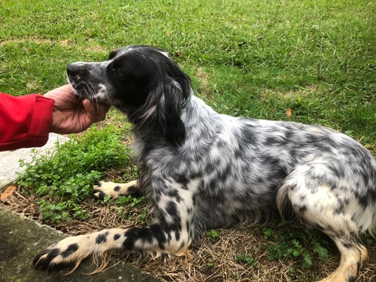 IRA kam wohlauf und gesund am 26. Januar 2019 im Setterland an. Sie ist eine kleine und zierliche Setterine, die sehr schüchtern und zurückhaltend die neue Welt beäugt hat bei der Ankunft.