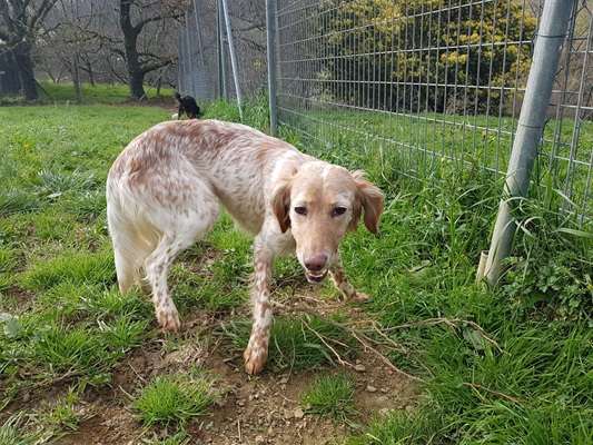 Unsere friedvolle IREEN ist eine supersüße zwei Jahre alte Orange Belton Hündin. Zusammen mit vielen anderen ihrer Hundekollegen wurde sie gegen Ende der Jagdsaison von ihrem Jäger einfach entsorgt, da sie für ihn nicht mehr von Nutzen war.