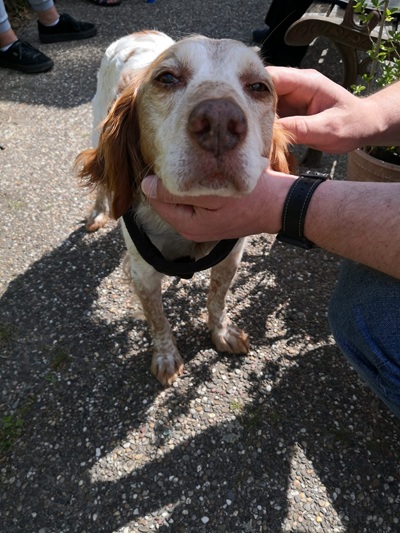 JACO kam wohl auf und gesund am 09. Mai 2020 im Setterland an. Er ist ein kleiner, zarter und liebenswürdiger Bretone, der sich sehr gerne streicheln lässt und jede Aufmerksamkeit aufsaugt wie ein schwamm. Für seine 11 Jahre ist JACO recht fit und mit etwas Muskelaufbau wird er bestimmt noch mal ein Rentner Sportler. Er ist sanftmütig und anschmiegsam und genießt es im Mittelpunkt zu stehen ohne aufdringlich zu sein. Mit seiner zarten Art wickelt er alle Zweibeiner in Sekunden um die Finger, keiner kann sich seinem Charme entziehen.