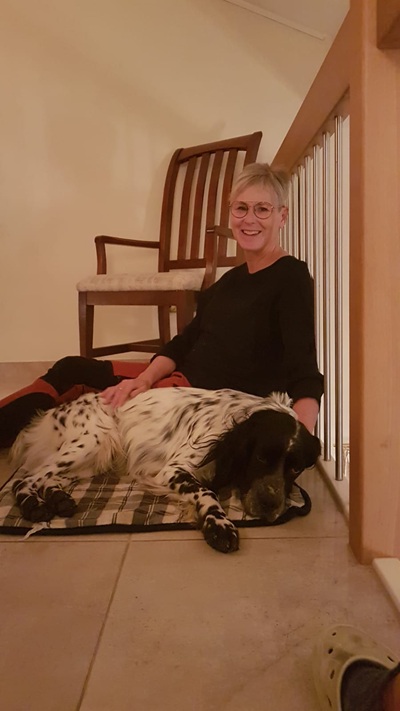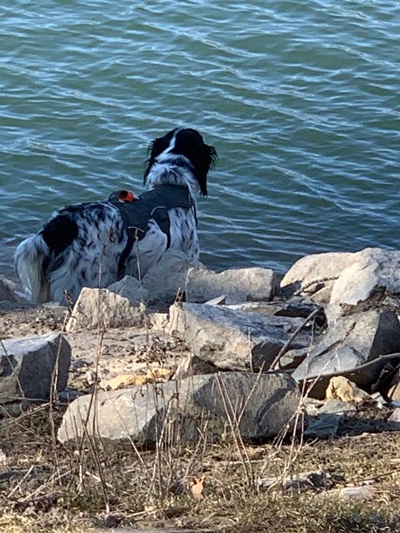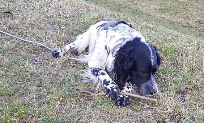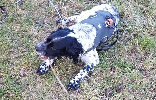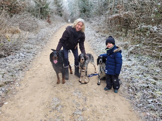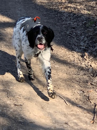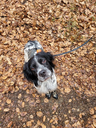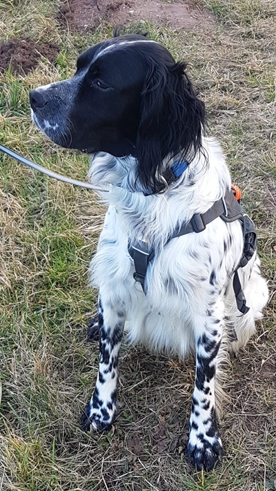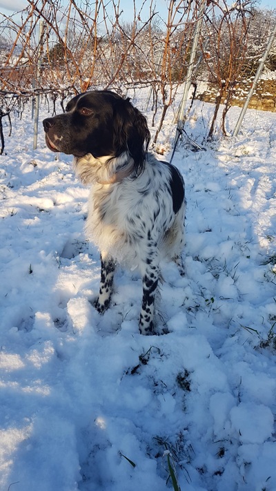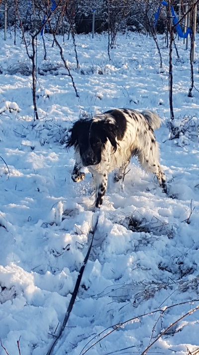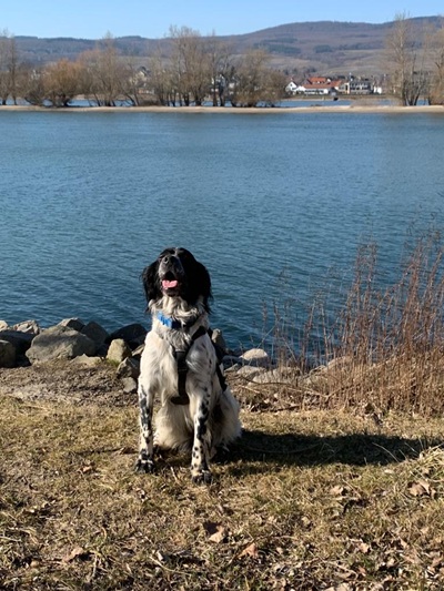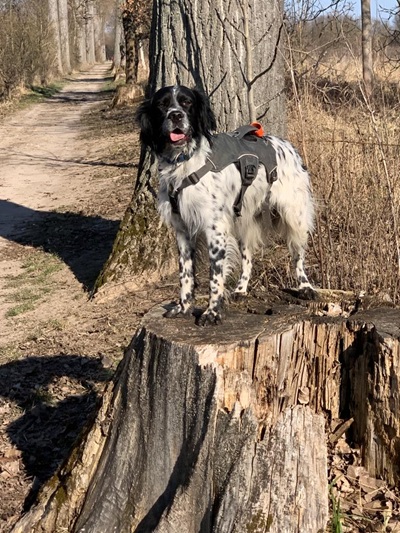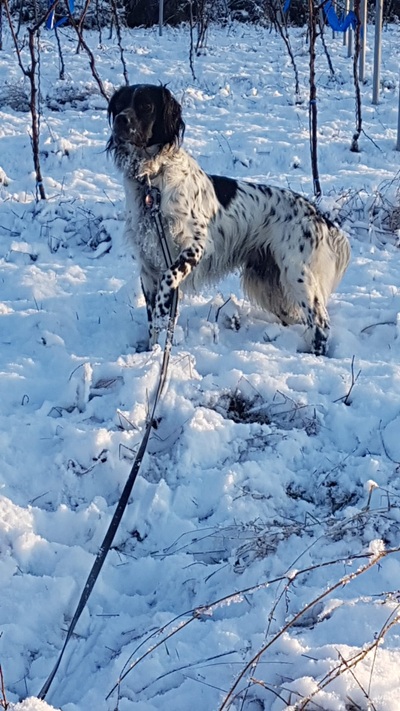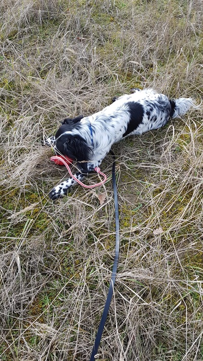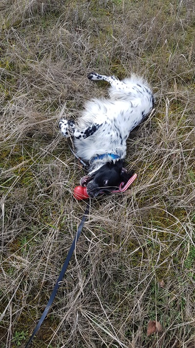 Es geht jetzt richtig gut mit ihm. Draussen ist er jetzt wo er selbstsicherer ist auch sehr an den Rehlein interessiert, die hier immer mal den Weg kreuzen, er weiss also doch dass er ein Jagdhund ist