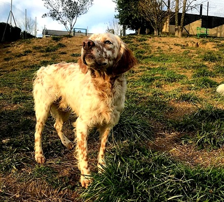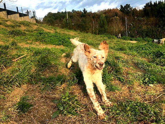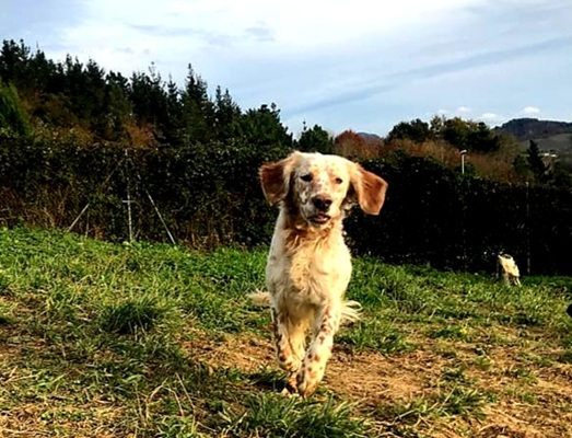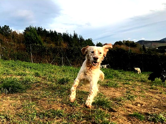 Wir trafen ihn im Oktober 2018 im Baskenland und können nur Gutes über ihn berichten. Wie es sich für einen jungen Kerl gehört, liebt er das ausgelassene Spiel und tollt für sein Leben gern über die Wiese mit seinen Artgenossen. Ober er das Leben im Haus und in unserer Gesellschaft kennt, können wir nicht mit Gewissheit sagen – doch das lässt sich spielend leicht für einen so aufgeschlossenen jungen Setter Bub lernen.