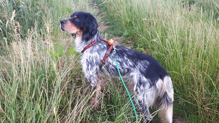 JOYCE ist wohl auf am 10. Juni 2017 im Setterland angekommen. Er ist ein sehr freundlicher, entpannter, aktiver, arbeitswilliger und verspielter junger Rüde, sehr aufmerksam, mit ständigem Blickkontakt zu seinen Menschen - neugierig, dennoch vorsichtig und eher zurückhaltend. Er geht toll an der Leine und gibt alles um zu gefallen.