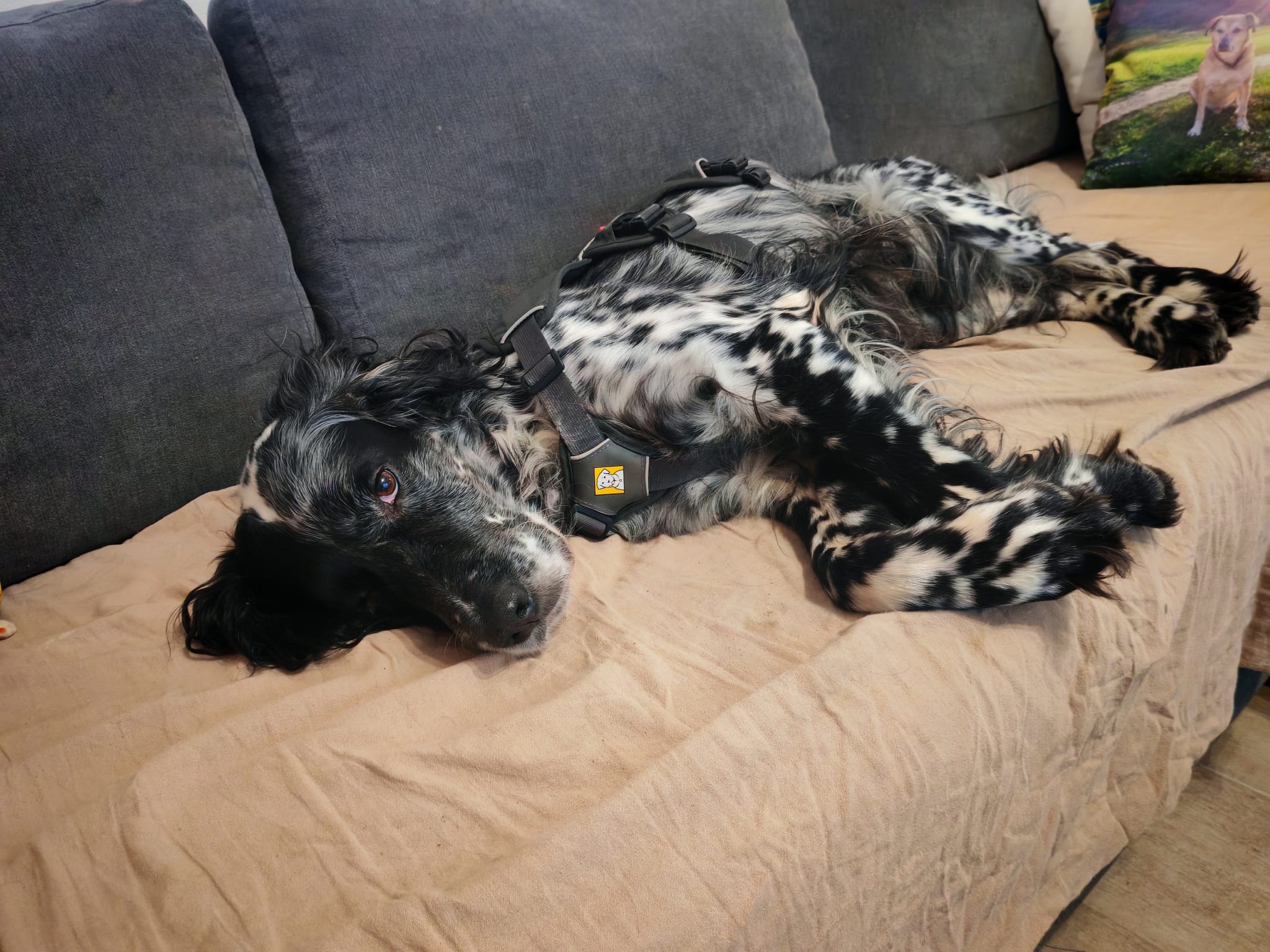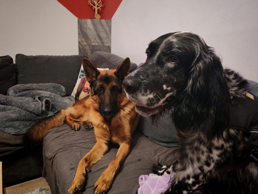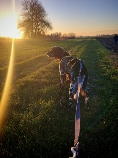 Rassetypisch bin ich sehr aktiv, für mein Alter noch top fit also quasi kein Hund für Couchpotatoes . Ich liebe es über die Felder und im Wald zu spazieren. Ich kann aber auch im Haus ruhiger.