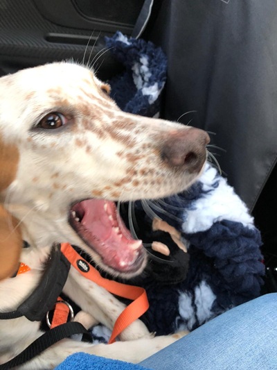 Unser kleiner Schützling kann es kaum erwarten, den Anruf zu bekommen, der ihr die Reise ins Setterland ermöglicht.