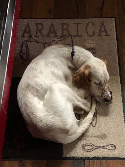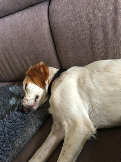 Nach dem Spaziergang wartet sie artig, bis die Pfoten abgeputzt sind, um sich anschließend auf’s Sofa zu legen und die ganzen neuen Eindrücke zu verarbeiten.