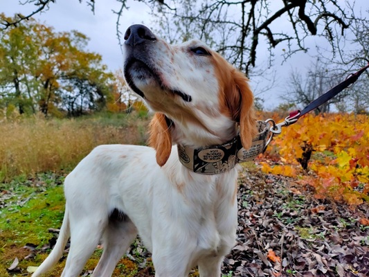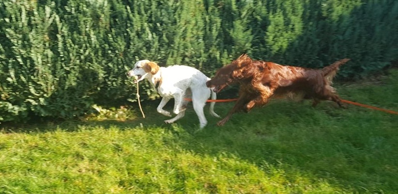 Im Wald lässt sie keinen Zweifel daran, ein echter Jagdhund zu sein, hält die Nase hoch auch an Stellen, an denen ihre Schwester einfach weiter geht (und das will was heißen J)