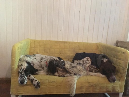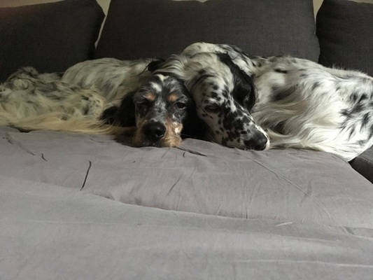 12.05.2020 LEONARD geht es sehr gut, er ist ein echter Goldschatz und weicht mir nicht von der Seite! Er hängt sehr an meinem älteren Setter Rufus und hat heute Nacht bei Ihm auf der Couch geschlafen.
