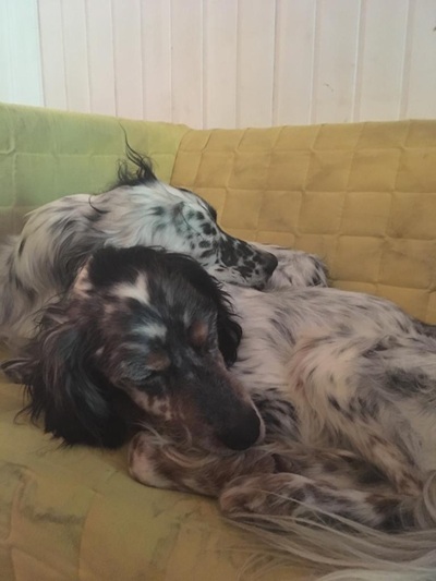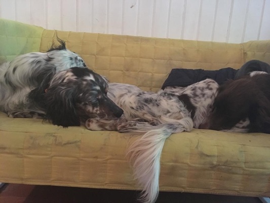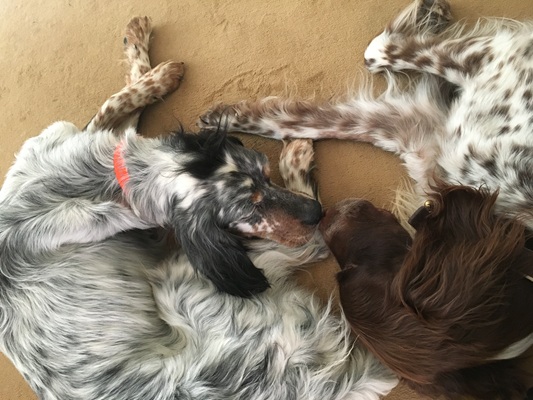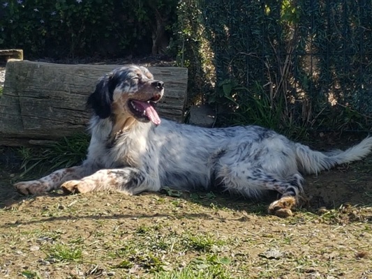 Mit meinen Hundekumpels verstehe ich mich prima, die Mädels versuchen immer mich zu erziehen, aber da schalte ich meine Setterohren auf Durchzug.