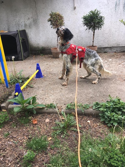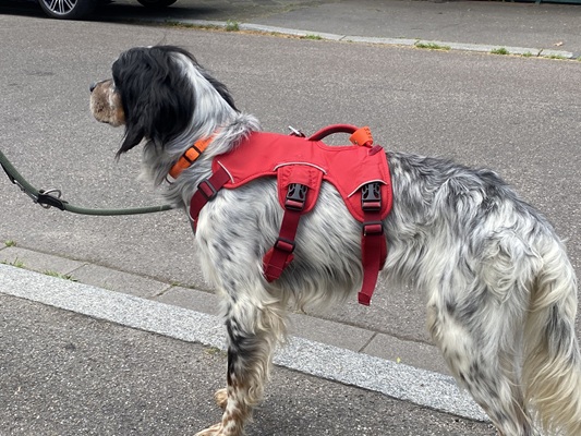 Beim Spaziergang laufe ich gut an der Leine, nur wenn ich Vögelchen sehe bin ich etwas aufgeregt und will hinter Ihnen her. Mein Pflegefrauchen sagt ich bin ein richtiger Jäger.