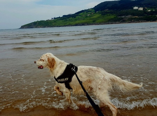 LI ist sportlich, agil aber ausgesprochen leinenführig. An den kommunikativen Übersetzungsschwierigkeiten vom Spanischen ins Deutsche muß noch ein wenig gearbeitet werden. Er kann auch gut mal alleine bleiben und freut sich riesig wenn man heimkommt.