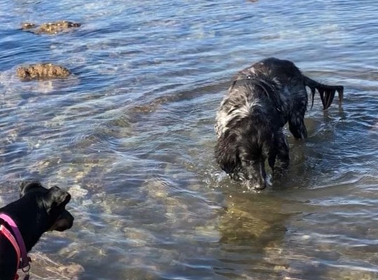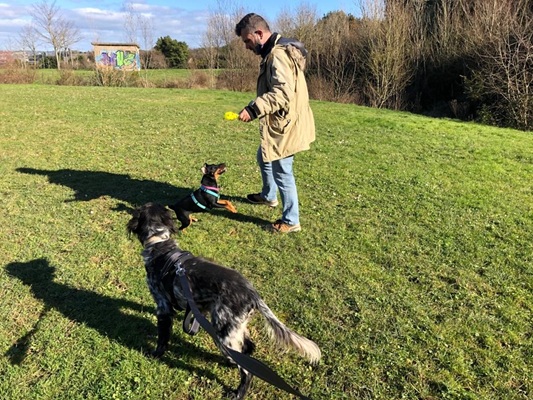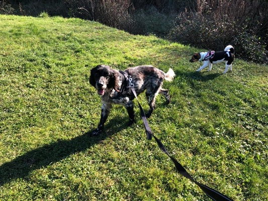 Mein neuer dicker Mitbewohner, ich meine den Vierbeiner, wird draußen aber auch immer interessanter. Ich kann mit ihm am Rhein und auf den Wiesen toben. Wenn ihm ein anderer Rüde zu Nahe kommt, werde ich an der Leine echt sauer und mache meine Besitzansprüche deutlich.
