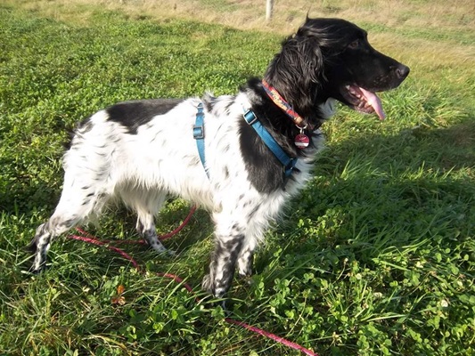 05.01.2015 Wir üben fleißig die Leinenführigkeit und seinen Jagdtrieb zu kontrollieren. LUR läuft schon ganz gut an der Schleppleine und steht Vogelwild vor! Er hat nach wie vor Verlassensängste, die zwar weniger werden, aber ist eben lieber mit seinen Menschen und seinen Artgenossen zusammen.