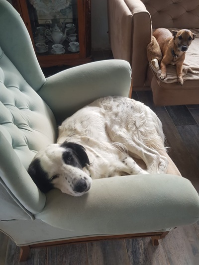 Am nächsten Morgen lernte sie ganz viele andere Kollegen kennen, die ebenfalls bei JESTER Unterschlupf gefunden hatten. Sie unterhielt sich viel mit ihnen und begann langsam Vertrauen zu fassen. Am liebsten waren MANAL aber die Abende, wenn sie dicht am warmen Kamin neben JESTER saß und er die wundervollen Geschichten aus dem Setterland vorlas. Das Setterland: Ein Land, in dem jeder Setter die Chance auf ein glückliches Hundeleben voller Liebe, Wärme, Nähe und ganz viel leckeres Futter bekommt. Wenn JESTER mal keine Zeit hatte, nahm sie das Buch mit in ihr Körbchen und las selbst darin. Mit dem Buch unter ihrem Körbchen und dem Satz, den sie immer am Ende der Geschichte von JESTER hörte, glitt sie dann völlig geborgen und voller Hoffnung ins Reich der Träume. „Vergiss nicht MANAL: Auch du wirst bald die Chance auf ein komplett neues Hundeleben bekommen. Ein Leben, das du dir so noch gar nicht vorstellen kannst. Ich werde die beste Familie für dich suchen und du wirst glücklich sein.“