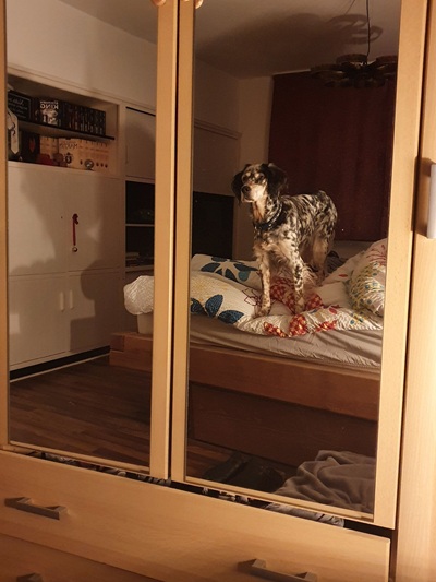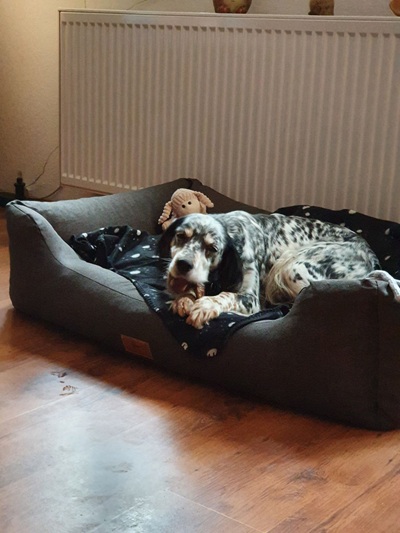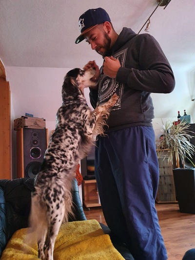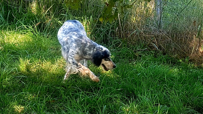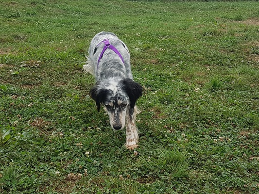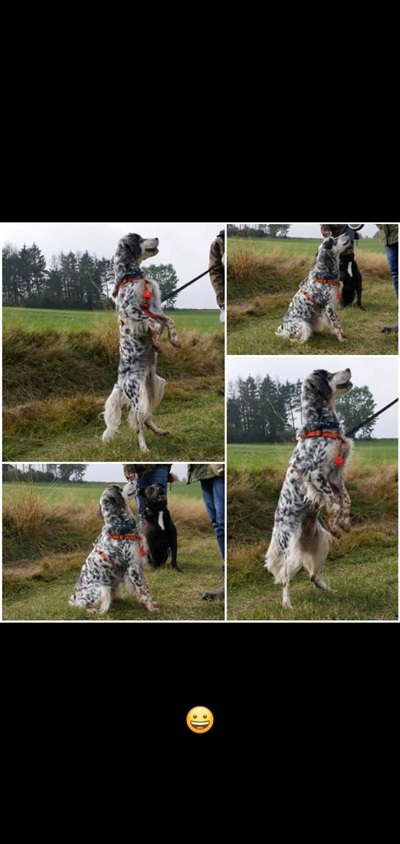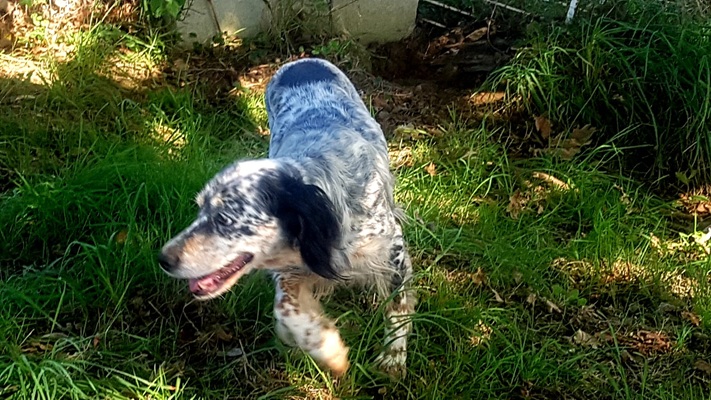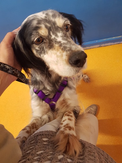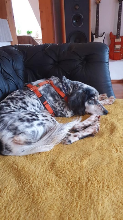 MARIA kam gesund und mit guter Laune 17. Oktober 2020 im Setterland an. Sie ist eine sehr aufgeschlossene kleine Fellnase die durch ihre aufgeschlossene und auch ungestüme Art sofort alle in ihren Bann gezogen hat. MARIA ist furchtlos und sehr neugierig. Sie hat weder vor Autos, Bussen oder Fahrrädern Angst und begegnet anderen Menschen, Kindern und Hunden vollkommen gelöst. Spielen muss sie noch lernen aber mit Fressen ist sie gut zu lenken.Im Straßenverkehr geht sie sehr gut an der kurzen Leine, im Wald und Feld ist die Nase stets im Wind oder im Gebüsch, ich habe schon etliche Bäume umarmt um ihr wieder auf den Weg zu helfen. Nachts schläft sie noch neben meinen Bett, mal schauen ob das so bleibt, denn mit dem Bett, wo Frauchen drin schläft, liebäugelt sie schon. Nur der Hund, der gegenüber dem Bett ist, ist ihr nicht ganz geheuer - der wurde sogar schon angeknurrt.