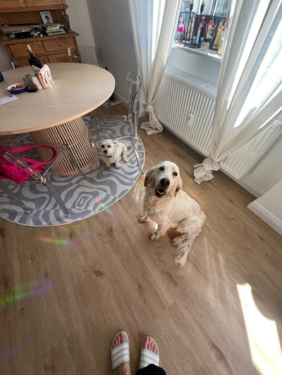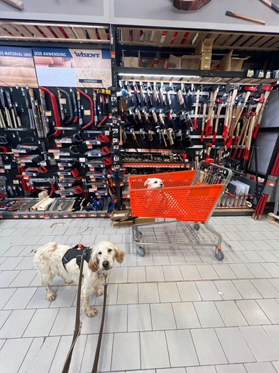MATILDA findet sich schon richtig gut auf unserer Pflegestelle zurecht. Sie ist sehr entspannt und anpassungsfähig. Es klappt alles sehr gut. Wir waren heute das erste Mal eine größere Runde Gassi im Wald, da hat sich direkt auch der Jagdtrieb gezeigt. Mit Leckerlis konnte man aber trotzdem ihre Aufmerksamkeit auf sich ziehen, also da ist Potential da, um mit ihr zu arbeiten. Stubenrein ist sie auch schon. In der Wohnung verhält sie sich total ruhig. Sie war schon im Café und im Bauhaus dabei. Das macht sie auch alles prima mit, als hätte sie noch nie was anderes gemacht. Auto fahren ist ebenfalls total entspannt, sie springt von alleine in den Kofferraum und legt sich hin und schläft bis man sie wieder rausholt.