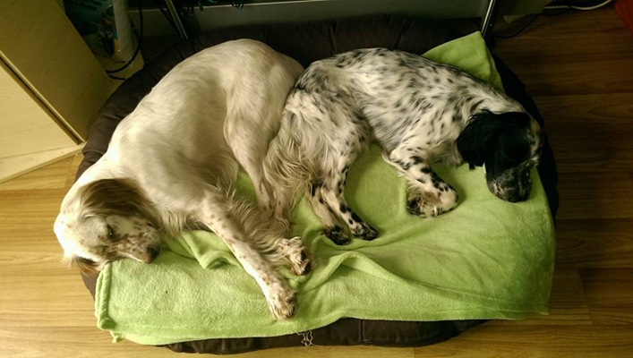 Willy war erst nicht so begeistert, er war sehr eifersüchtig, hat sie nur ignoriert bzw. ist gegangen, wenn sie sich zu ihm legen wollte. Mittlerweile spielen sie toll miteinander und schlafen auch zusammen. MAY ist einfach zum Knutschen. Sitz klappt inzwischen und im Auslauf genügt ein Pfiff und ein Ruf und MAY steht parat und himmelt uns mit ihrem unwiderstehlichen Blick an. Sonst ist May ein richtiger Wirbelwind, passend zu Willy. Sie taut immer mehr auf. Wir sind froh, May bei uns zu haben.