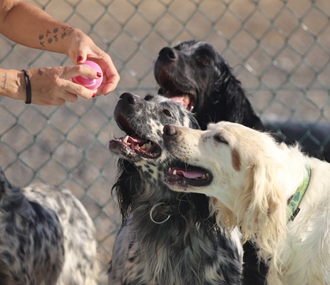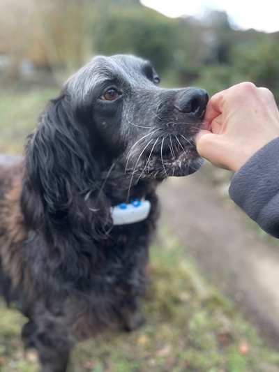 Cool ist auch echt wenn wir hier Leckerlis bekommen oder die versteckt werden im ganzen Garten, das mache echt fun.