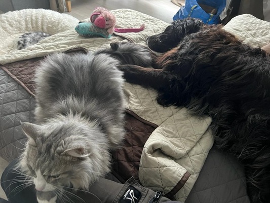 Frauchen sagt das ist auch gut so, dann liege ich nicht im Weg. Die Katzen sind mir hier total egal die dürfen auch bei mir liegen. Mit den anderen Setternasen hier verstehe ich mich mittlerweile gut.