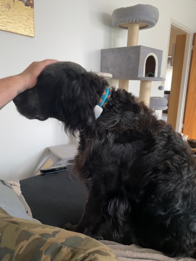 Ja das kann ich nämlich auch, kuscheln, denn zu Hause bin ich fast immer Lammfromm.