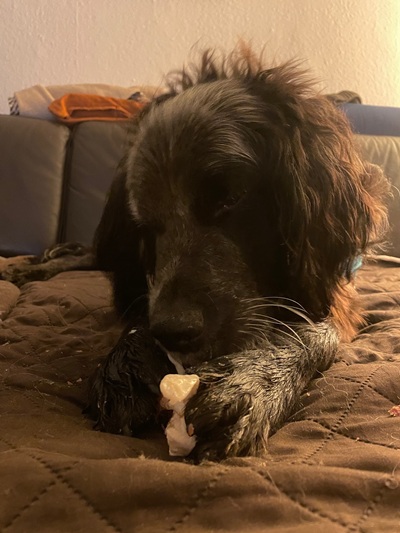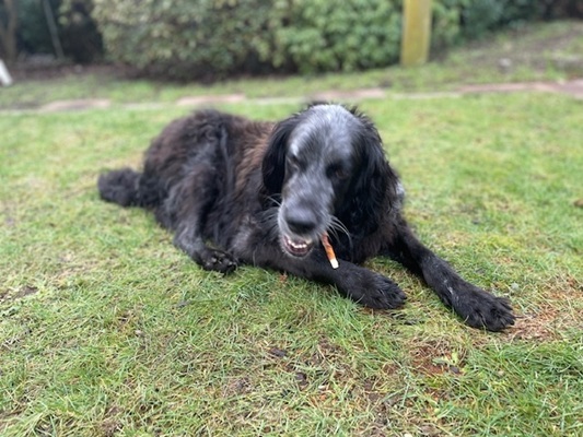 Also eins muss ich ja mal sagen, Setterland ist viel viel besser als alles was ich vorher kannte. Hier gibt es immer lecker Futter, ich nehme alles was ich darf und die leckeren Kaustangen sind Mega. Man schmunzelt hier schon weil, ich so schöne Zähne bekommen habe.