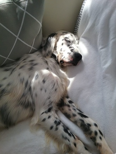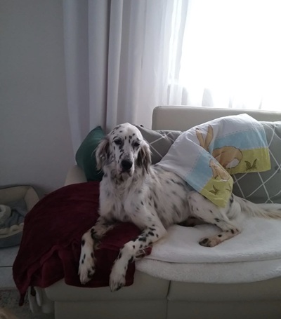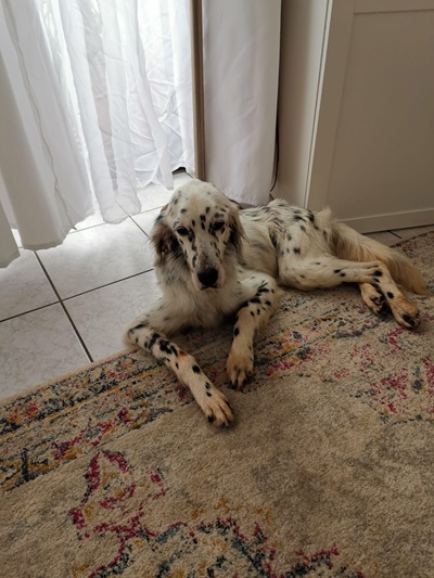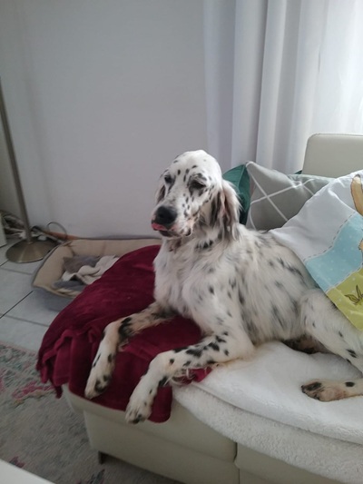 Es war Liebe auf den ersten Blick, als ich ihn auf der Webseite von Setter Rescue sah. Als ich ihn endlich am 09.05.2020 in die Arme nehmen konnte, konnte ich mein Glück noch nicht fassen. Ich kann es gar nicht richtig beschreiben, aber es war von Anfang an eine enge Bindung da.