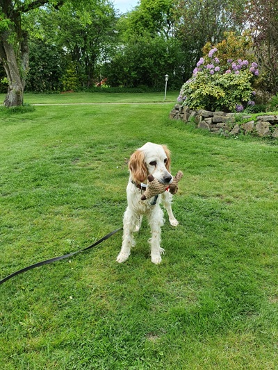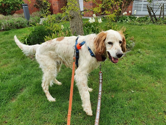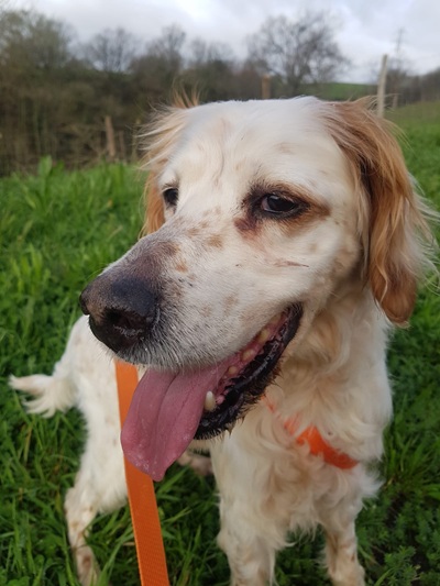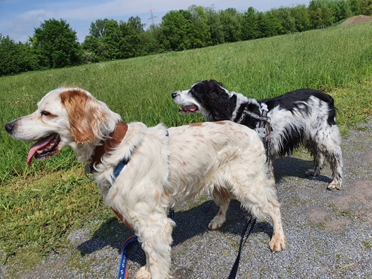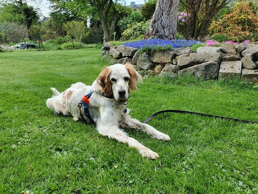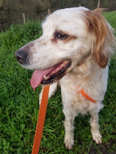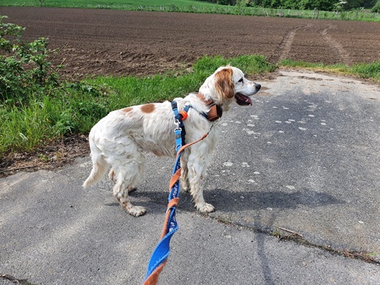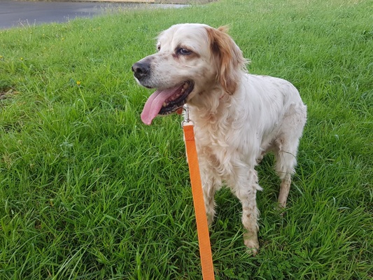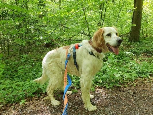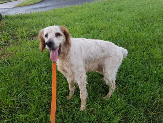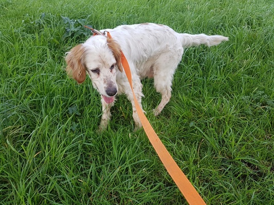 Er ist ein sehr lieber und anhänglicher Setterrüde, der sich sehr schnell und völlig problemlos in unseren Alltag integriert hat. Er ist ja schon ein etwas älterer Herr und liebt es spazieren zu gehen. An der Leine läuft er sehr gut.