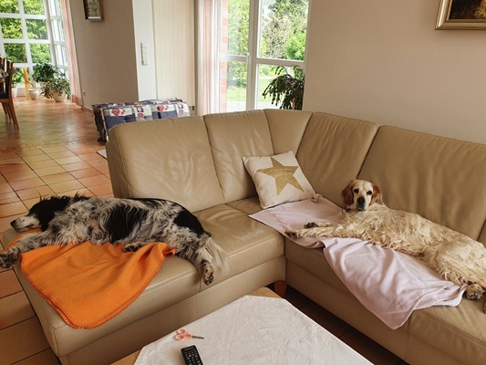 NAHI war vom ersten Moment an stubenrein und auch mit dem vorhandenen Hund gab es vom ersten Moment an kein Problem. Bei uns lebt er in einem eher ruhigen Haushalt, abgesehen von den Besuchen der Kinder und Enkel. Über diese Besuche freut er sich immer sehr, denn dann gibt es meistens Leckerchen.