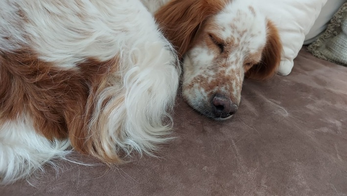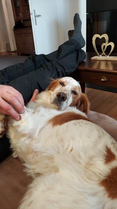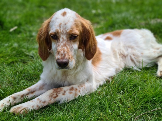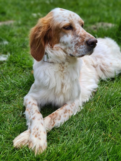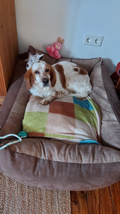 Als NAIRA am 30.04.2022 im Setterland ankam, war sie ziemlich verängstigt und durch den Wind. Nach einer Woche kann man sagen, sie ist im Leben mit Haus angekommen. NAIRA liebt den Garten, die Couch und das Bett und ist ein ganz liebes Mädchen. Besonders auf Frauen ist sie fixiert. Mit Männern scheint sie keine guten Erfahrungen gemacht zu haben, diese umgeht sie im großen Bogen. Andere Hunde findet sie super, wenn diese nicht zu stürmisch sind. Auf der Arbeit ist sie ebenfalls gut "angekommen" und hat schon Hundefreundschaften geschlossen. Sie fährt super im Auto mit, ist (fast) stubenrein und geht schon toll an der Leine. Auch die Schleppleine kennt sie schon; damit wird fleißig der Rückruf trainiert.