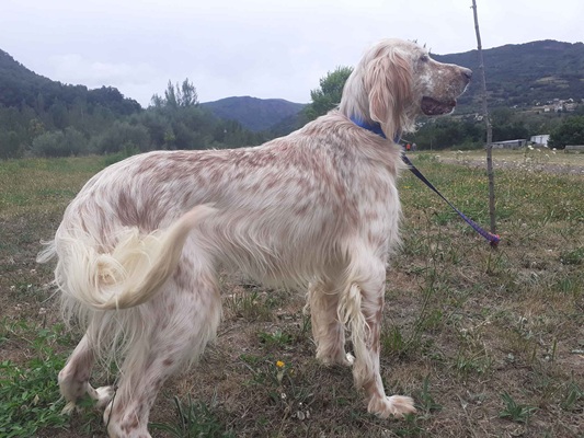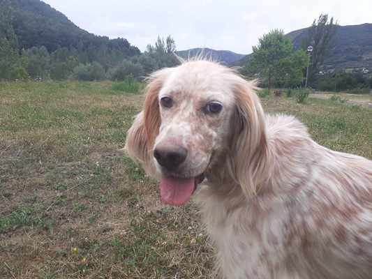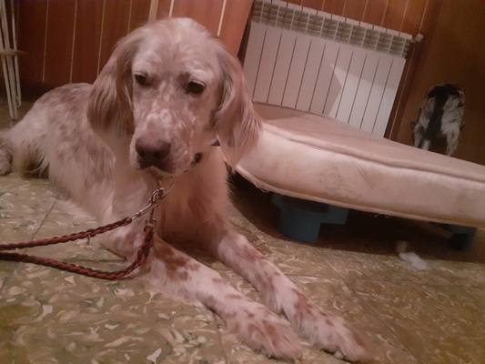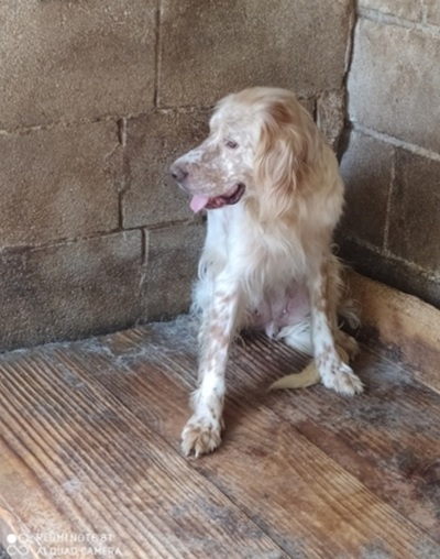 Was ist sie doch für eine bildschöne und liebenswerte Orange Belton Hündin von 3,5 Jahren. Jetzt, nachdem sie gebadet und in Form gebracht wurde, kann sie sich endlich mit ihrer hübschen Fellzeichnung sehen lassen. Sie ist lebhaft und temperamentvoll, Spaziergänge findet sie immer sehr aufregend. Zuhause ist sie wie die meisten Setter lammfromm. NASKA erholt sich dann von den Strapazen der letzten Monate und wünscht sich nichts sehnlicher als eine eigene Familie.