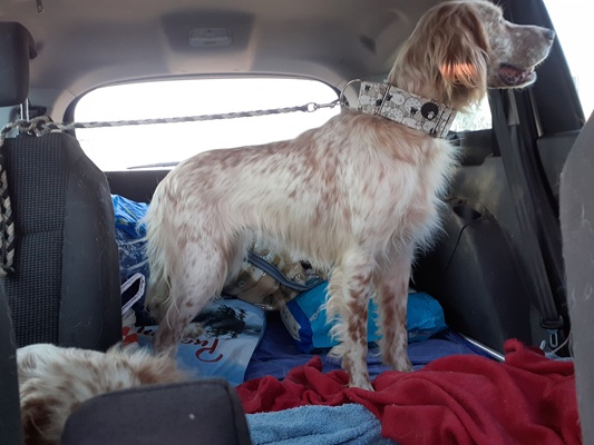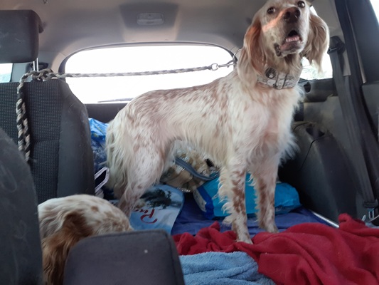 Zu guter Letzt landete NASKA auf einer Plattform für Secondhand Gegenstände, um wieder mal den Besitzer zu wechseln. Das war ihr großes Glück, denn JESTER, unser Schutzpatron des Setterlandes, war natürlich sofort zur Stelle und bereitete diesem abwertenden und beschämenden Zustand ein Ende. JESTER nahm NASKA unter seine Fittiche, drückte der erlösten Orange Belton Hündin das Setterlandticket in die Pfötchen und schwärmte erst einmal von einer Badewanne mit viel warmen Wasser und Badeschaum, in dem sich ihre geschundene Haut von allem Ungeziefer und dem Dreck der letzten Monate befreien könnte. Er würde dafür sorgen, dass sie nie wieder in eine so entwürdigende Situation gerät. Im Setterland würden sich Menschen finden, die sie pflegen und hegen. Statt einer verdreckten und kalten Holzplatte würde ein kuschelig warmes Körbchen nach aufregenden Spaziergängen auf sie warten. Sie würde genug zu fressen bekommen und ab und dann vielleicht ein großes Rinderohr, an dem sie genüsslich knuspern könnte. Sie würde gebürstet und medizinisch versorgt werden und sich nicht mehr nach Streicheleinheiten verzehren müssen.