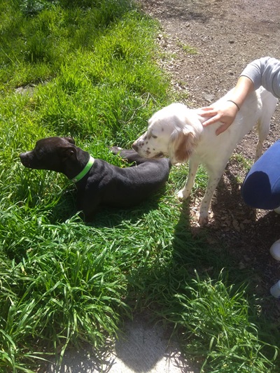 Menschen und Tieren gegenüber ist NIEBLA sehr aufgeschlossen. Sich mag den Kontakt zu anderen Hunden, spielt und rennt gerne mit ihnen. Da ist es ganz gleich, ob der andere Hund ebenfalls ein Setter ist oder ein kleiner Chihuahua.