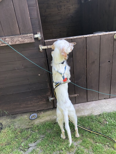 NIEBLA ist wohlauf am 15. Juni 2019 im Setterland angekommen. Sie ist eine sehr aufgeweckte, lebensfrohe und agile Junghündin. Setter typisch ist sie schon jetzt sehr interessiert uns fixiert in jegliche Vögel, lässt sich allerdings auch schon sehr gut abrufen.