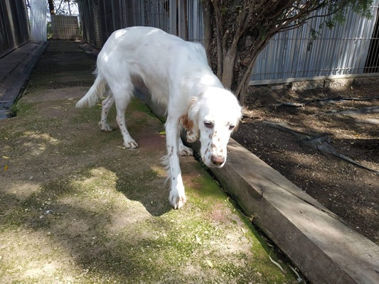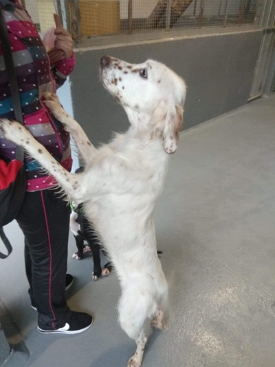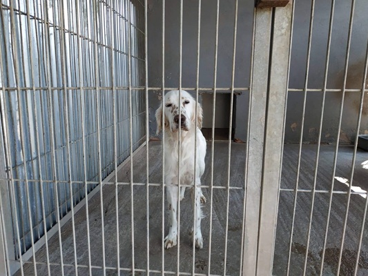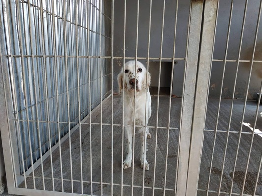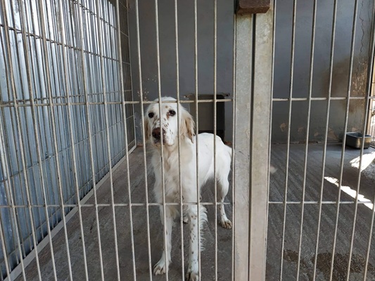 JESTER beobachtete NIEBLA schon eine ganze Weile. Als die Obdachlosen wieder einmal ohne ihre Hunde fortgingen, kontaktierte unser Setterland-Schutzpatron umgehend das spanische Team und so landeten sie in einer Perrera. Eine Perrera ist weiß Gott kein schöner Ort, aber so waren NIEBLA und ihr Kumpel zumindest außer Lebensgefahr. Ein paar Mal noch versuchten die Obdachlosen ihre Hunde wiederzubekommen, aber ihnen fehlte zum Glück das Geld. Denn ein enger Käfig oder befahrene Straßen sind kein geeigneter Ort für Hunde.