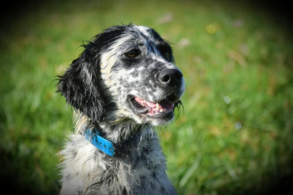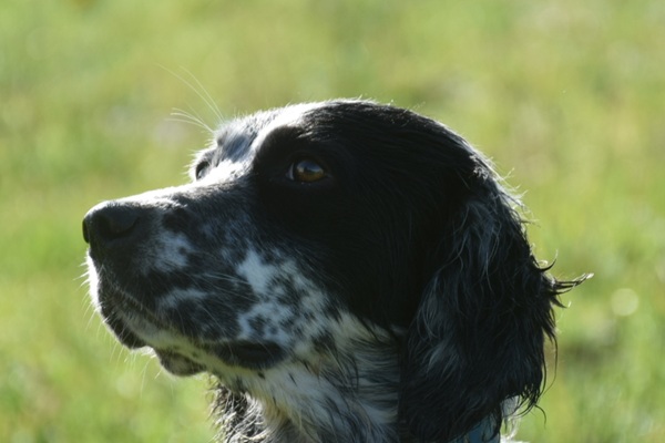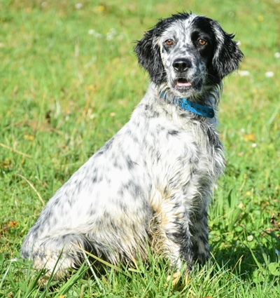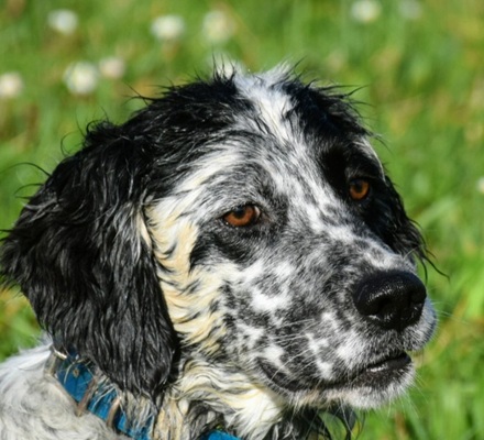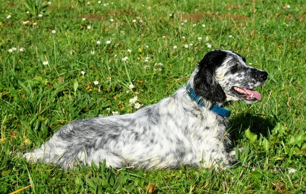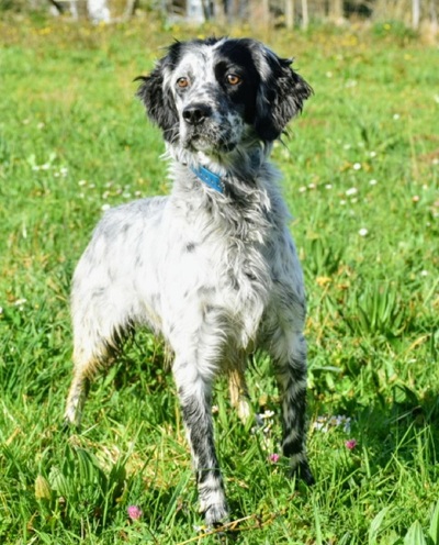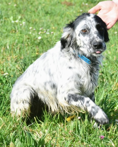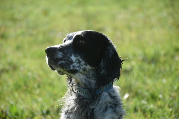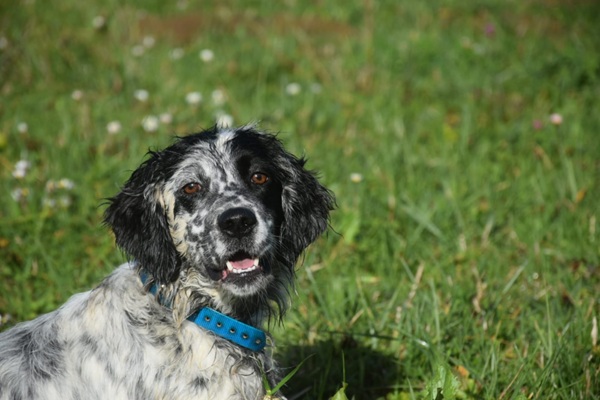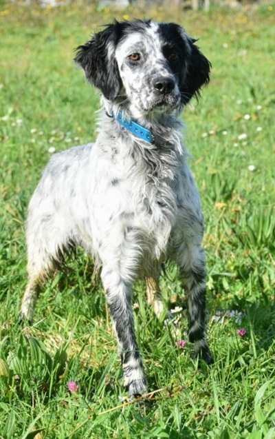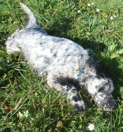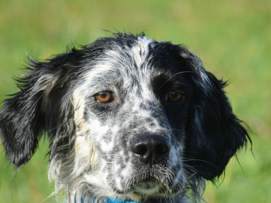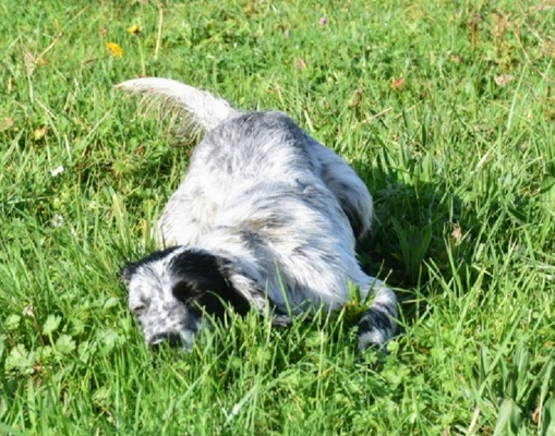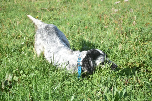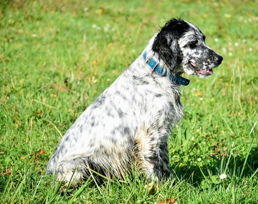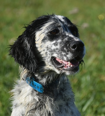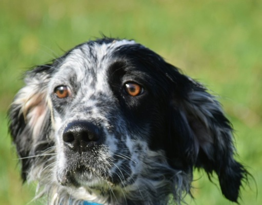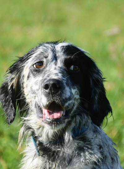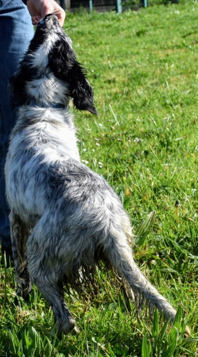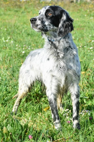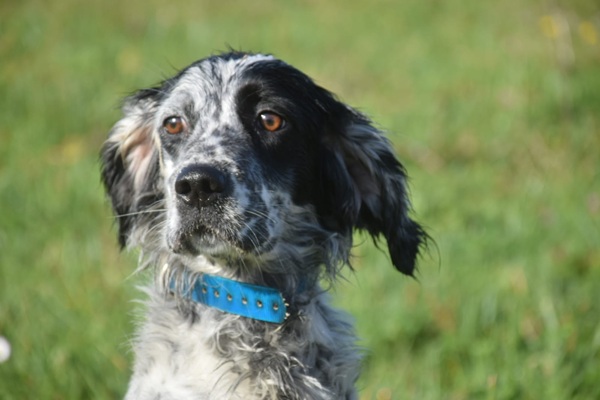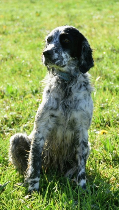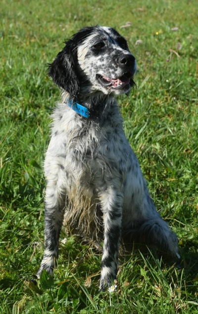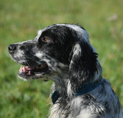 Eine Setterhündin wie sie im Bilderbuch steht. Ihre offene und freundliche Art verzaubert einen sofort. Die 2-jährige Blue Belton Hündin ist fast noch ein Kind. Sie spielt mit allem, was ihr vor die haselnussbraunen Augen kommt. Da muss auch schon mal ein Grashalm herhalten.