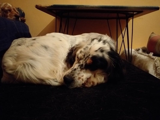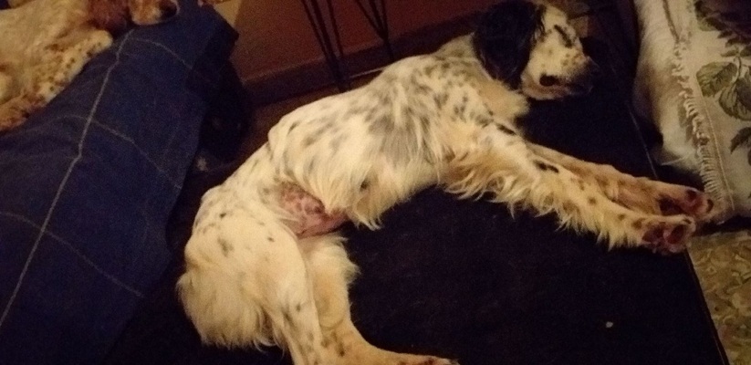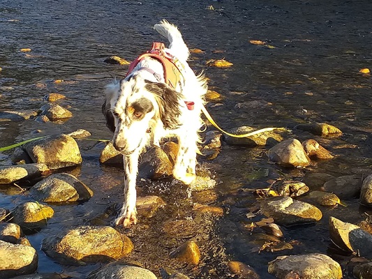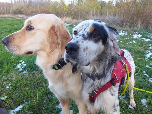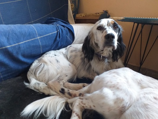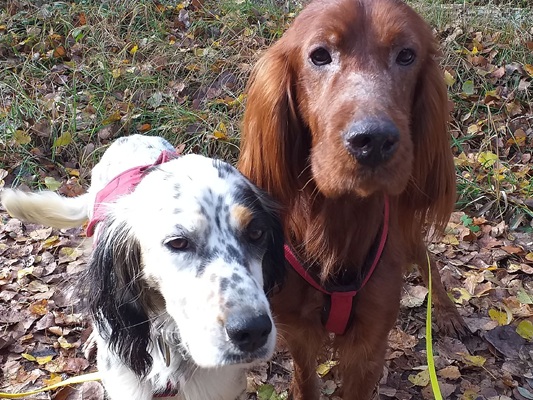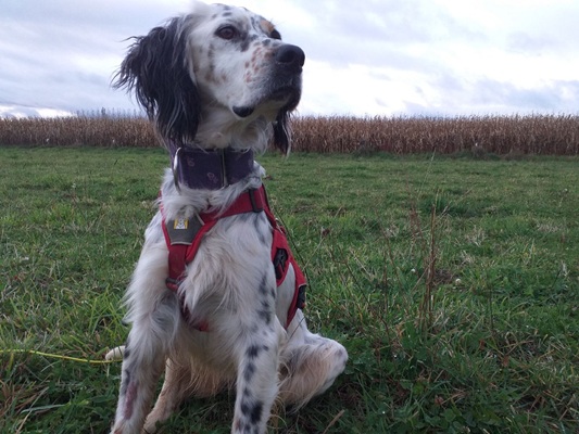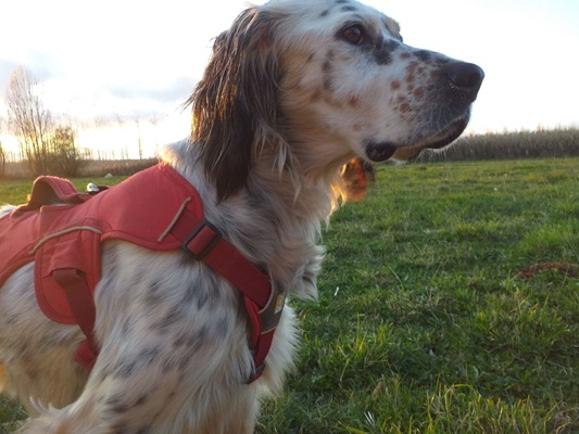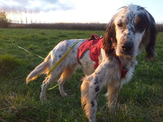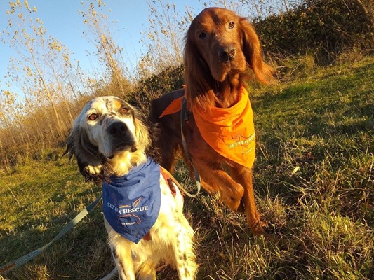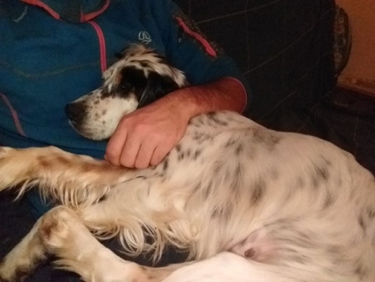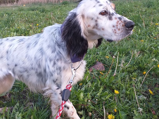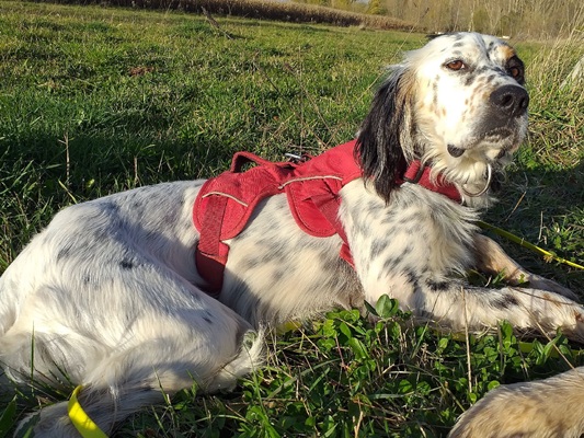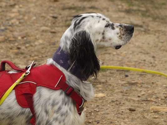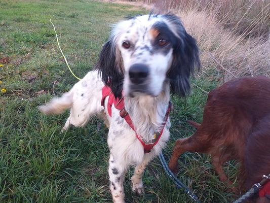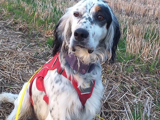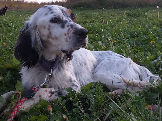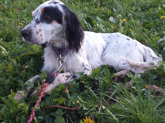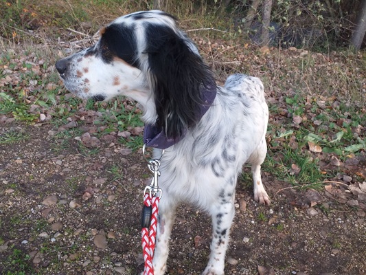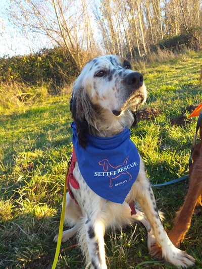 Aber wir sind das Setterland und deshalb ist JESTER der süßen NUNA direkt zu Hilfe geeilt und bindet ihr zärtlich das Setterland-Tuch um ihren Hals: Herzlich willkommen NUNA!