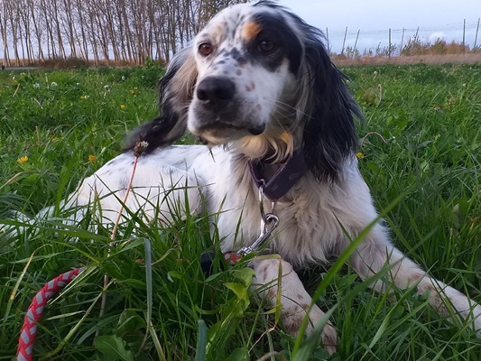 Stellen Sie sich vor, Sie stehen in einem Shelter im spanischen Baskenland. Der Wind trägt einen strengen Geruch nach Urin um ihre Nase. Lautes Gebell und weinende Hunde betteln hinter ihren Zellgittern nach Aufmerksamkeit. Plötzlich ein dumpfer Knall hinter Ihnen… Sie drehen sich um und entdecken eine junge Setterhündin, die ängstlich und verstört im Gras liegt: NUNA, Tricolor-Setterhündin …