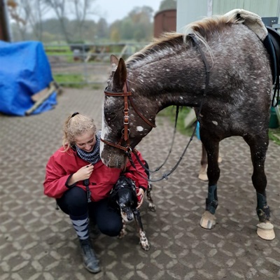 OHANA ist freundlich zu allen Menschen und Hunden, auch Kinder sind kein Problem, selbst wenn sie sich schnell oder hektisch bewegen. Ebenso kommt sie mit Männern prima klar. Selbst Katzen interessieren sie draußen nicht, sie ignoriert sie einfach.