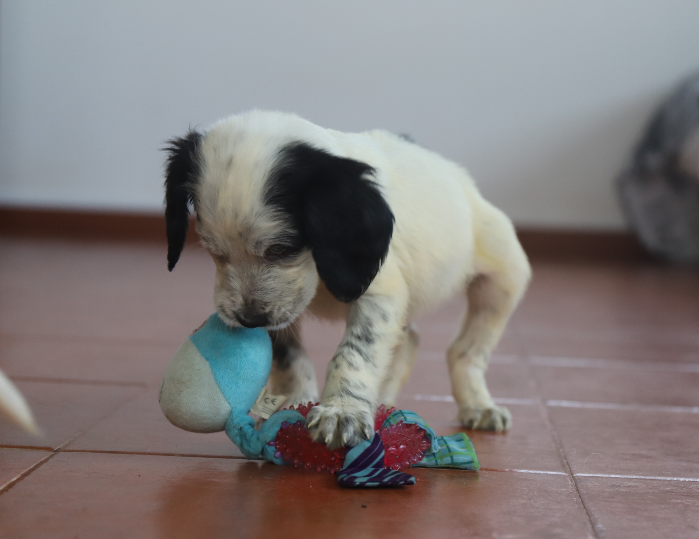 Hier ist eine Geschichte darüber, wie es PATCH geht. Es geht ihm sehr gut. Er fühlt sich schon jetzt ganz zu Hause. Er belästigt Kayla (Kuka), Gavin und Vanda sehr gern. Er möchte wirklich mit ihnen befreundet sein, aber manchmal ist er sehr beschäftigt mit diesen alten Leuten. Er ist auch gut mit Lena, der Hündin meiner Schwester, befreundet. Er liebt auch Vögel. Dann kann er sehr lange auf seinem Hintern sitzen und die Vögel beobachten. Wir haben auch herausgefunden, dass er Wasser liebt. Letzte Woche war ich mit ihm und Lena an einem nahegelegenen Teich und er war begeistert. Er spielt auch gerne mit seinen Spielsachen und spielt Fußball. Besonders das Aufheben der Tennisbälle, wenn ich sie wegwerfe, macht Spaß. Mittlerweile hat er auch einen Welpenkurs und die anderen Hunde findet er besonders interessant. aber es geht ihm wirklich gut. Außerdem ist er super süß und wenn er wirklich müde ist, kriecht er nah an dich heran, um schlafen zu gehen. Ansonsten ist er immer noch ein echter Welpe, manchmal sehr wild und verrückt. Aber er ist auch sehr lieb und verrückt nach anderen Menschen und Hunden. Am liebsten lässt er sich von allen streicheln. Ich habe einige Fotos von Bram (Patch) hinzugefügt. Es wächst auch gut. Und er ist völlig gesund. Verrückt nach Essen. Ich hoffe, ich habe Sie ein wenig informiert. Ich werde bald ein Update senden.