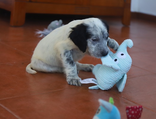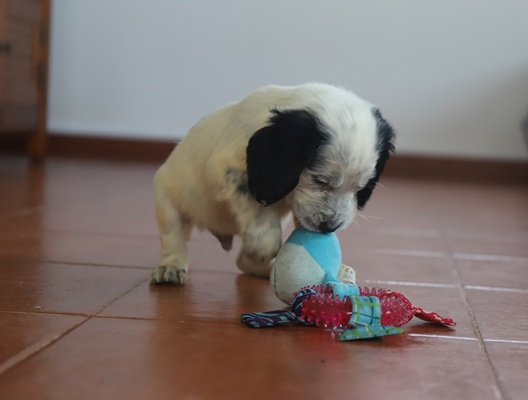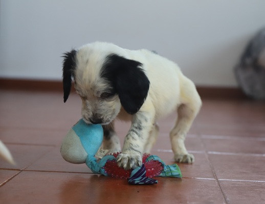 Nun wohnen wir bei einer tollen Frau, die sich ganz liebevoll um uns kümmert. Wir sind pumperl gesund und spielen und toben den ganzen Tag. Endlich können wir das tun, was Welpen tun sollten ... Jeden Tag neues Erleben, mutig die Welt erkunden, Grenzen austesten, spielerisch Kräfte messen und ständig neue Erfahrungen machen.