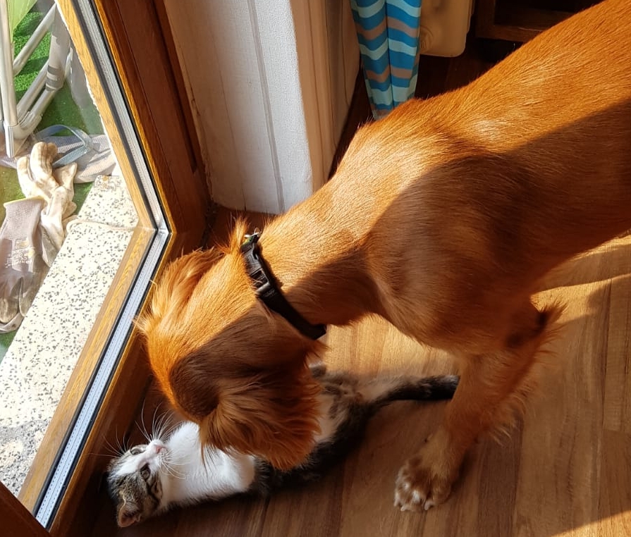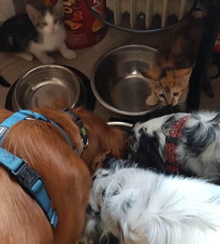 mit meinen ganzen Kumpels ( Hunde und Katzen), einfach toll. Ich habe gelernt an