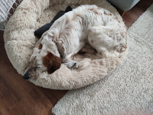 Dann erscheint ihr eines Nachts JESTER, der Schutzpatron unserer Setter, in ihren Träumen. Er macht ihr sofort Mut und schiebt ihr ein Ticket für das Setterland zwischen die Pfötchen. Auf ihre letzte Familie könnte sie doch verzichten. Er würde eine neue Familie für QUIRA finden. Jemanden, auf den sie sich hundertprozentig verlassen könnte. Niemand, bei dem sie sich wieder auf dem Schleudersitz befindet und bei Belieben aus ihrem gewohnten Umfeld herauskatapultiert wird. Eine Familie, die ein dauerhaftes kuscheliges Körbchen bereitstellt und sie nach Strich und Faden verwöhnen wird mit Leckerli, einem ansprechend duftenden gefüllten Fressnapf und ausdauernden Spaziergängen. Sie würde mit anderen Hundekumpels, die sie auf den Spaziergängen trifft, vor Freude über die Wiesen toben. Und das Wichtigste: sie würde danach immer wieder in ihr gewohntes Zuhause zurückkehren und die einzelnen Familienmitglieder würden sich abends überbieten, ihr Kuscheleinheiten zu verabreichen.
