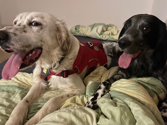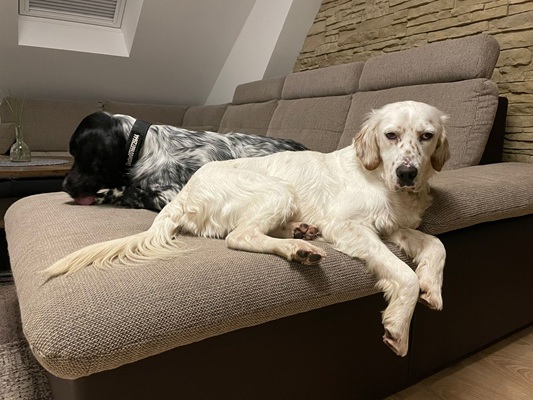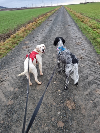 In Wittmar angekommen lernte er nach und nach alle Mitbewohner -seine neue Familie und seinen Setterkumpel Dexter, der seit März 2021 bei uns ist - kennen.