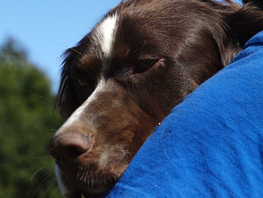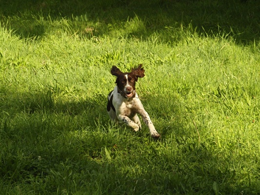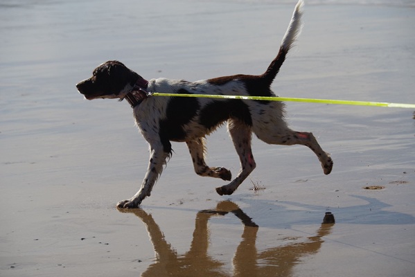 08.02.2019 Nun lebt der muntere und hübsche Robbin bereits zwei Wochen mit uns zusammen. Längst hat er unser Herz erobert und unsere Hoffnung erfüllt. Robbin versteht sich prima mit unserer neunjährigen Setterhündin Selina. Bereits seit der ersten Nacht teilen Sie das Hundebett. Er nutzt seinen Schlafplätze nicht. Im großen Garten bewegt sich Robbin frei und kommt auch sofort wenn wir rufen. Das sieht beim Spaziergang anders aus. Voller Kraft und Neugier läuft er mit uns. Inzwischen legen wir unsere Strecken in der Hälfte der Zeit zurück. Also fleißig üben.