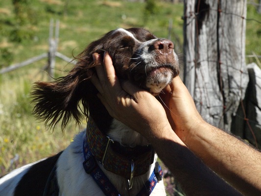 Beim ersten Kennenlernen zunächst schüchtern und zurückhaltend, taut er nach 1 bis 2 Tagen auf und nähert sich uns neugierig. ROBBIN fühlt sich in freier Natur sehr wohl, städtische Betriebsamkeit und laute Geräusche sind ihm unheimlich. Mit seinen Artgenossen tollt er gerne und verträgt sich mit allen sehr gut. Er kennt das Leben im Haus ist stubenrein und sucht die körperliche Nähe zu uns …. Er braucht eine ruhige und entspannte Eingewöhnungszeit sowie einen souveränen Begleiter, um sich weiter so prächtig zu entwickeln. Wir trafen uns Mitte Oktober 2018 im Baskenland.