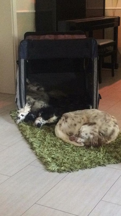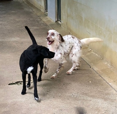 Ich bekomme jetzt zweimal am Tag eine Mahlzeit, ab und an noch ein Knöchelchen, damit ich mein ideales Gewicht bekomme und so richtig fit werde, um mit meiner neuen Freundin – FINJA – so richtig toben zu können. Sie war am Anfang etwas unsicher was ich wohl hier mache und ich musste mich etwas um sie bemühen, aber jetzt nach der ersten Woche, läuft es echt gut mit uns beiden ;-) na ja, kann man ja auch verstehen, sie muss ja jetzt die Aufmerksamkeit von Frauchen u. Herrchen mit mir teilen, aber wir beide bekommen das super hin. Wir schlafen abends immer zusammen vor dem Schlafzimmer, sie in Ihrem Korb und ich in meiner riesigen Box - bis ich das alles hier durchschaut habe ;-) … wie das alles läuft - und wenn der Wecker von Frauchen klingelt, geht der Tag mit knuddeln und einer ersten Rund durch den Garten los ... dann gibt es Frühstück für uns zwei ... echt lecker !! Mein Herrchen hatte diese Woche Home Office und ich hab mich immer in seine Nähe gelegt und mich total bemüht alles richtig zu machen, da war er mächtig stolz auf mich und hat mich viel gestreichelt wir sind dann immer zu dritt raus gegangen und haben mit Finja`s Quietsche-Ball gespielt