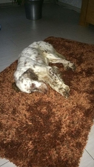 Jester, unserem unermüdlichen Schutzpatron des Setterlands, der die Augen immer wach und offen über die Berge, Täler, Wiesen und Gehöfte streifen lässt, entgeht nichts und er hat eines Nachts, als das Mondlicht ihm seinen Weg zeigte, nicht lange suchen müssen, um SAM zu finden, der mit seinem strahlend weißen Fell hell in der Dunkelheit leuchtete. Er erzählte Jester sogleich, dass er bei seinem Jäger alles andere als glücklich ist und offenbar den Ansprüchen seines Herrn nicht mehr genügt. Bevor Schlimmeres passieren konnte, hat Jester selbstverständlich keine Sekunde gezögert, SAM unter seine Fittiche zu nehmen und in Sicherheit zu bringen.