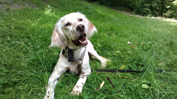 Ich wiege jetzt 21 kg. Um genau zu sein, 21,3 kg. Ich habe schon fleißig gelernt und habe verstanden, was „SITZ“ bedeutet. Mittlerweile kann ich „SITZ“ auch schon, wenn nur der Finger gehoben wird. Bin ein bisschen stolz auf mich.
